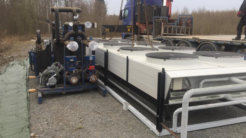 - 1 pcs Friga Bohn, Air Cooled Condensor 400 kW, contains 10 pcs 2,8 kW Fans.